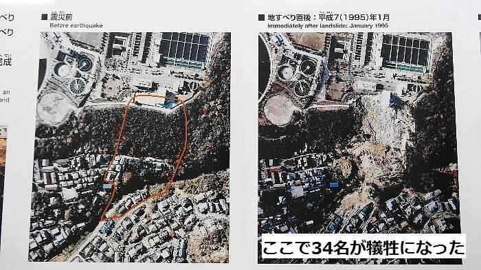 その訳は、阪神大震災が引き起こした地滑りで、当にこの地点で34人が亡くなったそうだ。
