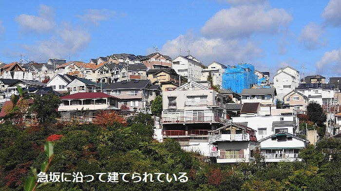 背後の高台に行くと、山を切り開いた様な所に民家が密集。西宮市は関西のベッドタウンと知ってはいたが、崖地を造成したかの様な所にも民家がある。うーん、あのクラスの地震が起きたらこの辺りはどうなんだろうと思うと、お~こわー。