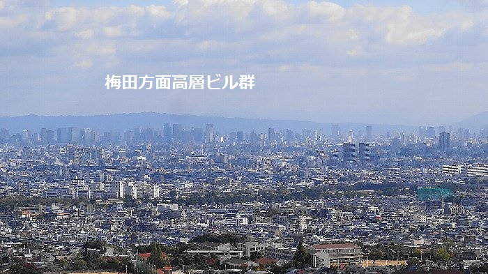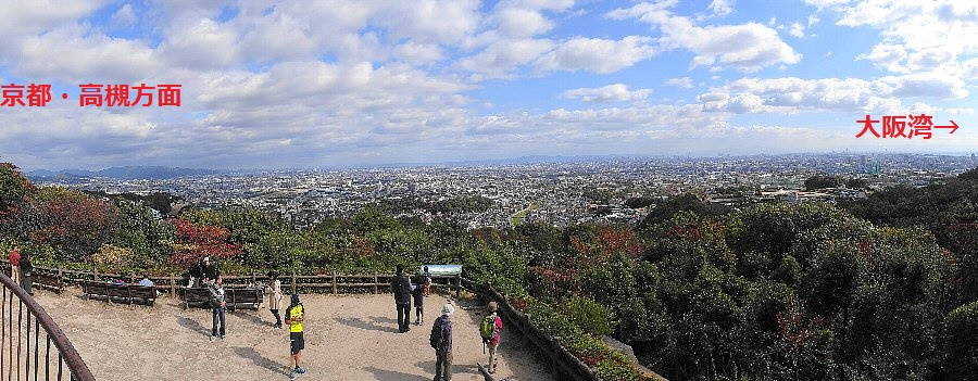 展望台に到達すると、左は京都・高槻方面から右の大阪湾までと、視野角150度くらいが一望と絶景。