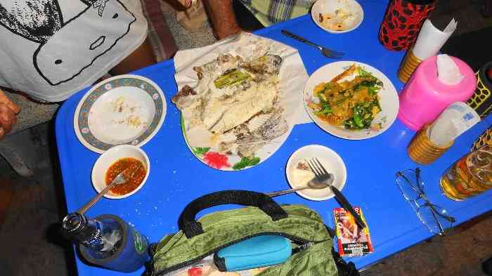 ビール以外に塩焼き魚にパッタイ注文と、ラッスはこの店の売り上げに貢献してるね。