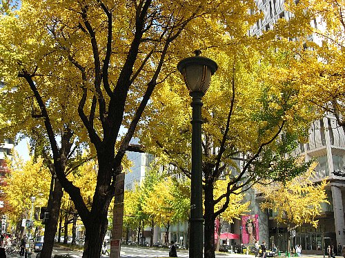 銀杏はやはり御堂筋だけど(右端)、まだ、まだら模様。