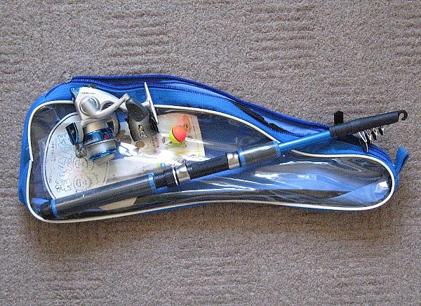 ホームセンターで釣具セット1600円があったのでついで買いしてしまった。竿先2mだが仕舞うと50cmでカバンに納まってしまう。