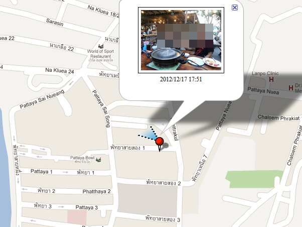例えば、ムーガタ食べに行った時はママのバイクに乗っけてもらった。ノース方面へ走っているとは知っていたが、後日自分で来れるかと訊かれれば自信なし。しかし、これを地図上に表示させると何処の地点からどの方向に向けて撮ったかまでピンポイントで知る事ができる。