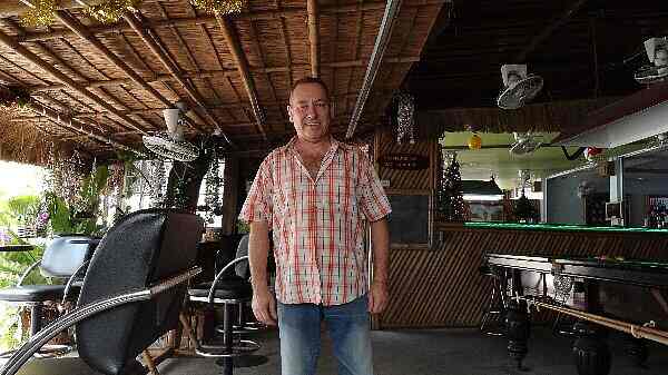 ビアチャーン小60Bとシーフード焼き飯(60B)を注文したね。待ってる間に奥からファランが現れた。