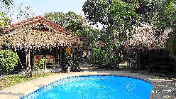 東屋風な屋根に大きめのスツール。それにキレイなプールもあり、ファランがまったりとしていた。