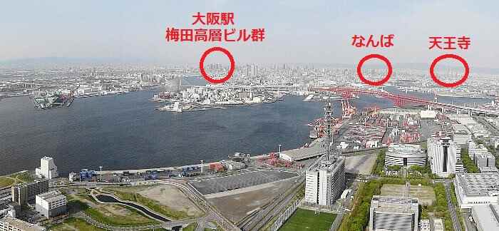 ②観覧車・海遊館方面はNHKニュースのラスト画面で「今の大阪」と流れる風景。