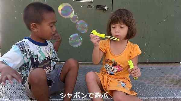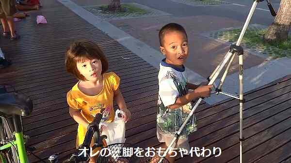 シャボン玉で遊んで、最後はオレの三脚をおもちゃ代わりにしよった。