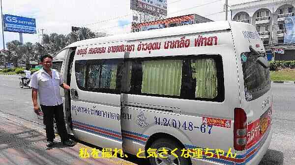 「ヤークジャパイシラチャ、ロットニーパイマイクラップ、シラチャに行きたいんだがこの車行きますか?」「チャイ、そうだ」。