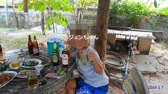 夜、ロオッおばさん家に寄ってみたら木陰下でタイ人グループが飲んでいた。
