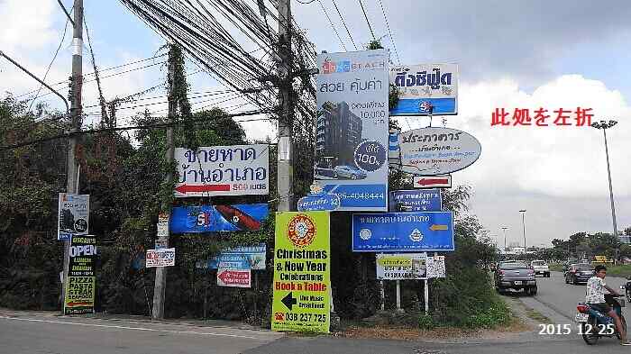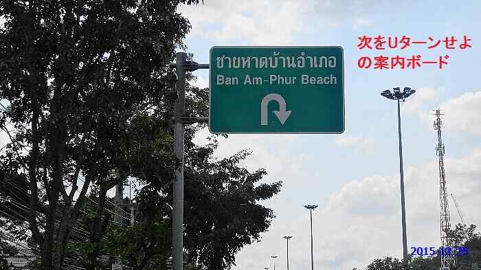 スクンビットを小一時間南下すると、ビーチ看板があった。次でUターンすればいいのだな。