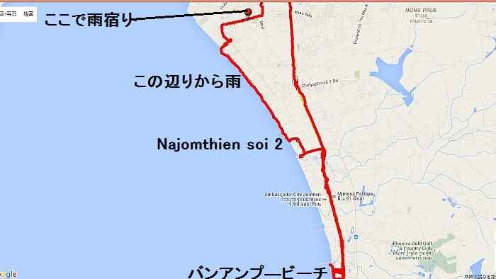 走行途中でプロイちゃんからジョムティエンに来ることがあれば立ち寄ってくれと聞いていたのを思い出し、Najomthien 2に進路変更。