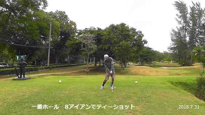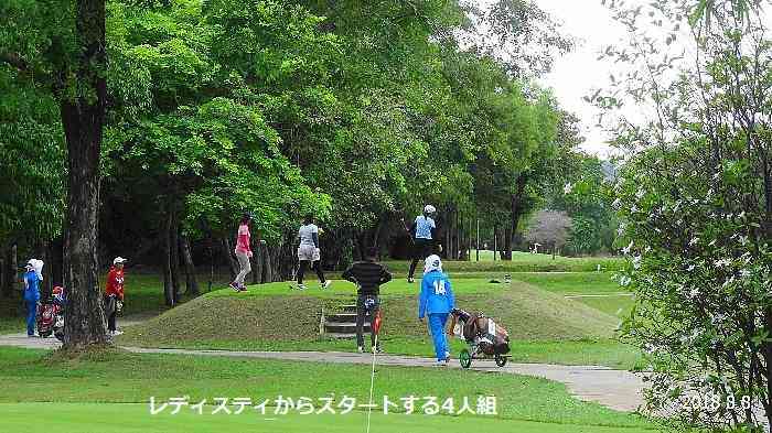 スタートホールでレディ2人に男1人のパーティから「一緒にどうですか」と誘われたが、「ビデオ撮りで迷惑かけるからお先にどうぞ」とやんわり断り、レディからティーオフもいきなり池ポチャ。