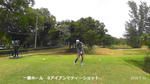 実は、数ホール前から右足のスウェイに留意したころから飛びがすごく良くなっていて、もうひと伸びがある。たぶん230くらいは飛んだであろうか。レディ達から歓声が上がる(59秒ごろ)。