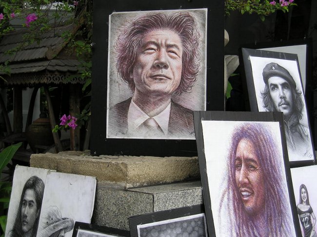 タイでは一枚の写真から起こして肖像画を描き、販売する絵画ショップを度々目にする。写真はパタヤで発見した画で、誰を描いたかは一目瞭然。